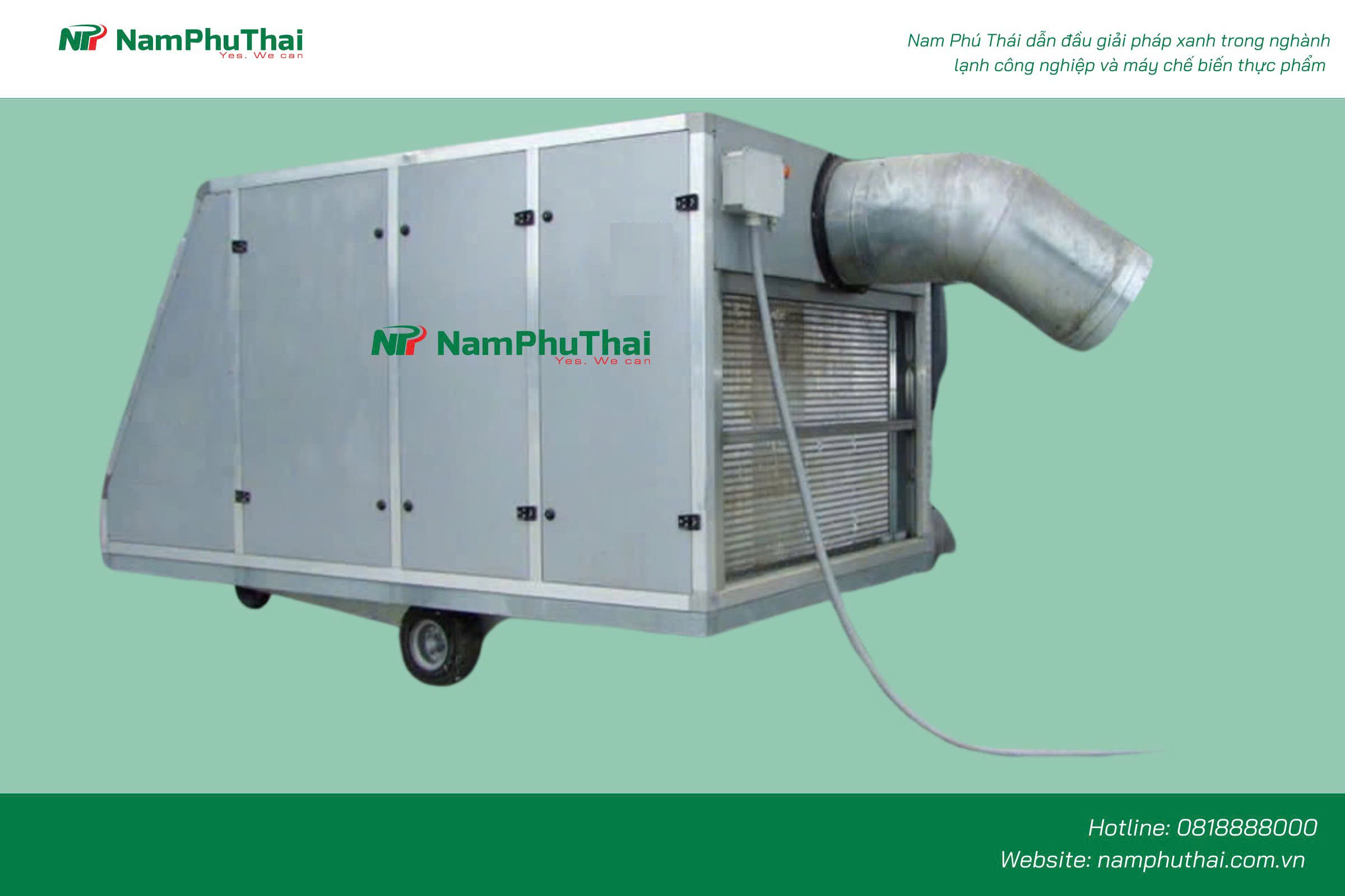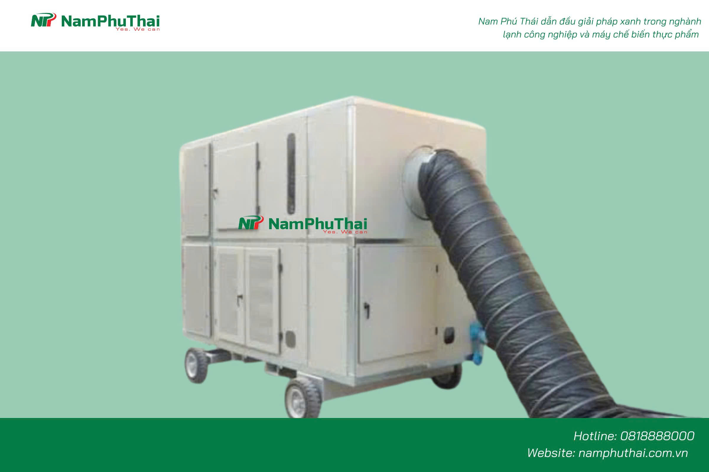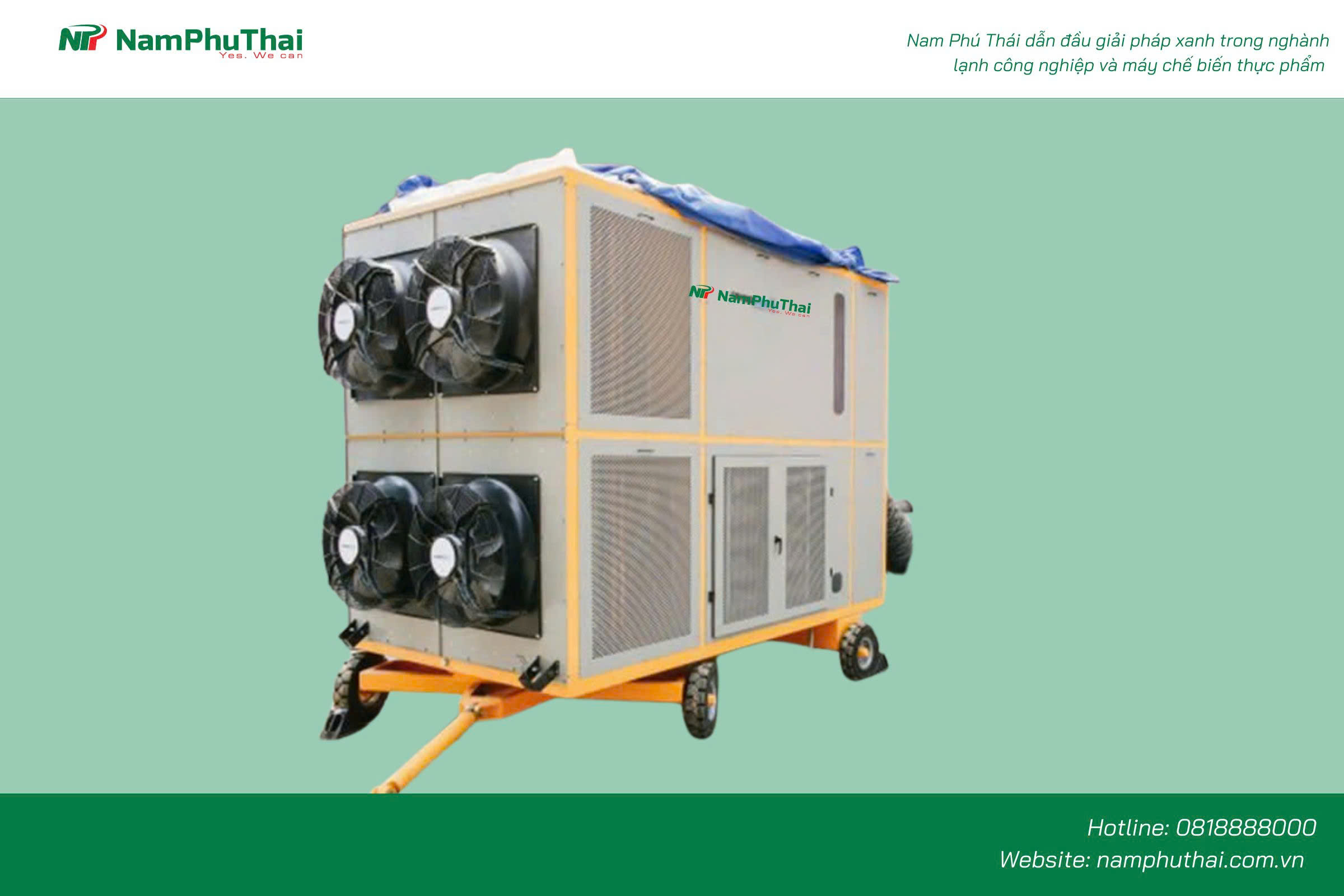 - Hút khí và Tạo lạnh có kiểm soát: Máy làm lạnh không khí xung quanh xuống nhiệt độ mong muốn và điều chỉnh độ ẩm tương đối của khí lạnh để tránh ngưng tụ.
